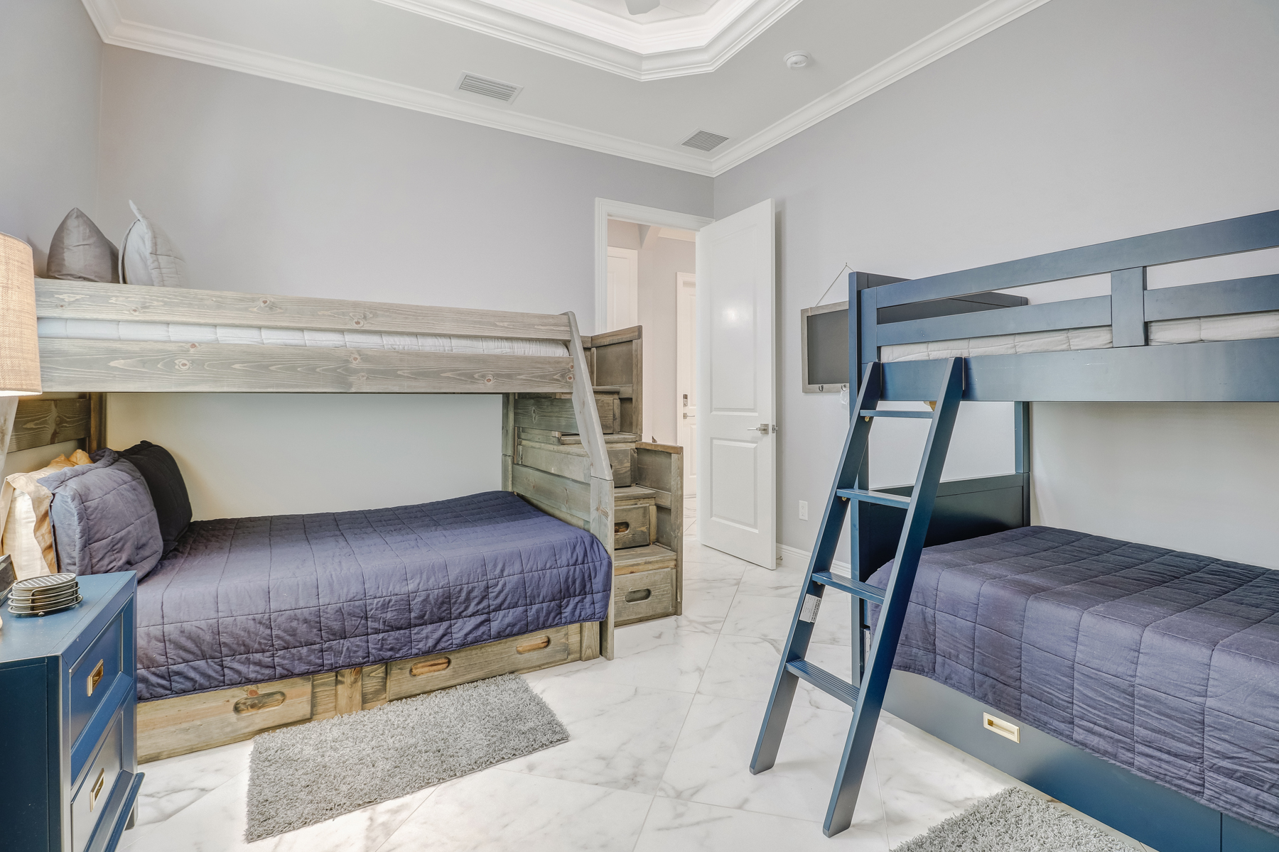 The third guest bedroom features two bunkbeds, cable TV and AC, and has a separate bathroom with standalone shower.